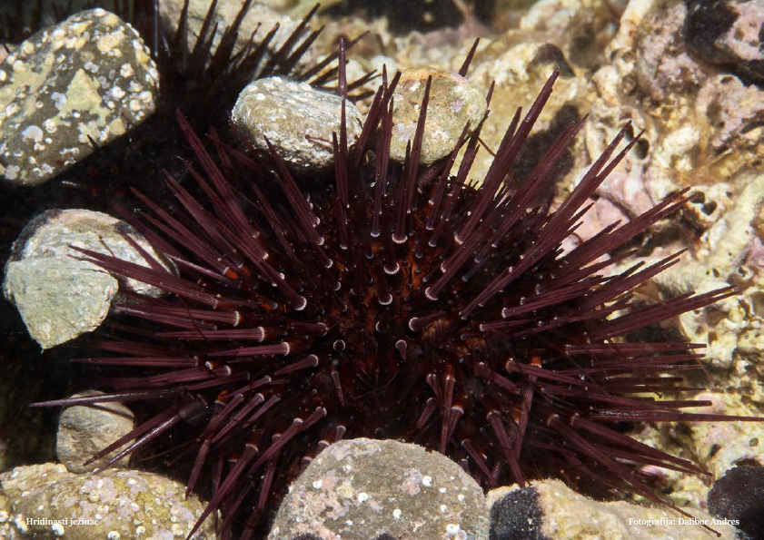 Latinski naziv: Paracentrotus lividus (Lamarck, 1816) Uobičajeni naziv: purple sea urchin Ostali nazivi: kamenjar, ljubičasti morski ježinac Dubina obitavanja: 0 – 20 m Karakteristike: Ježinac kamenjar ima krhke bodlje promjenjivih boja od tamnoljubičaste, tamnosmeđe do tamnozelene. Promjer mu je obično do 8 cm. Usni otvor nalazi mu se s donje strane. Često se kiti kamenčićima. Boja je kućice bez bodlji zelena. Rasprostranjenost: istočni Atlantik od Irske do Maroka, Jadransko i Sredozemno more. Zanimljivosti: Ovaj ježinac ne može tolerirati iznenadni nizak salinitet nakon velikih kiša, ali na njega malo utječu organska onečišćenja i teški metali. Zapravo, cvjeta u blizini kanalizacijskih ispusta. Paracentrotus lividus obično se nalazi na stijenama te livadama morskih cvjetnica. Izbjegava meke podloge i ponekad se može naći skupljen na kamenju ili otocima školjkaša okruženih pijeskom. Može svojim ustima i bodljama kopati meke stijene kako bi stvorio šupljine u koje se vraća i u koje točno stane svojom veličinom. Manje jedinke posebno koriste ova utočišta kao zaštitu od grabežljivaca. Mužjaci i ženke okupljaju se radi mrijesta i otpuštaju gamete u vodeni stupac. Ličinke žive kao dio zooplanktona oko 28 dana prije nego što se nasele na čvrstu podlogu i započnu preobrazbu. Kreću se pomoću bodlji i cjevčica koje su nastavak vodožilnog sustava. Priljevom i odljevom tekućine ambulakralne se nožice produžuju i skraćuju te na taj način životinja pokreće svoje kruto tijelo. Ježinci se hrane noću algama, ali tamo gdje su grabežljivci noću aktivniji mogu se hraniti i danju. Glavni su predatori ove vrste rak, Maja crispata, ribe šarag, Diplodus sargus, fratar, Diplodus vulgaris, vrana, Labrus merula i knez Coris julis te puž volak, Hexaplex trunculus te morska zvijezda, Marthasterias glacialis. Na bentosku zajednicu uvelike utječe broj ježinaca i njihove prehrambene sklonosti. Tamo gdje su brojni, obično su okruženi golim tlom. Među bodljama često se mogu vidjeti male ribice poput priljepaka te glavoča.