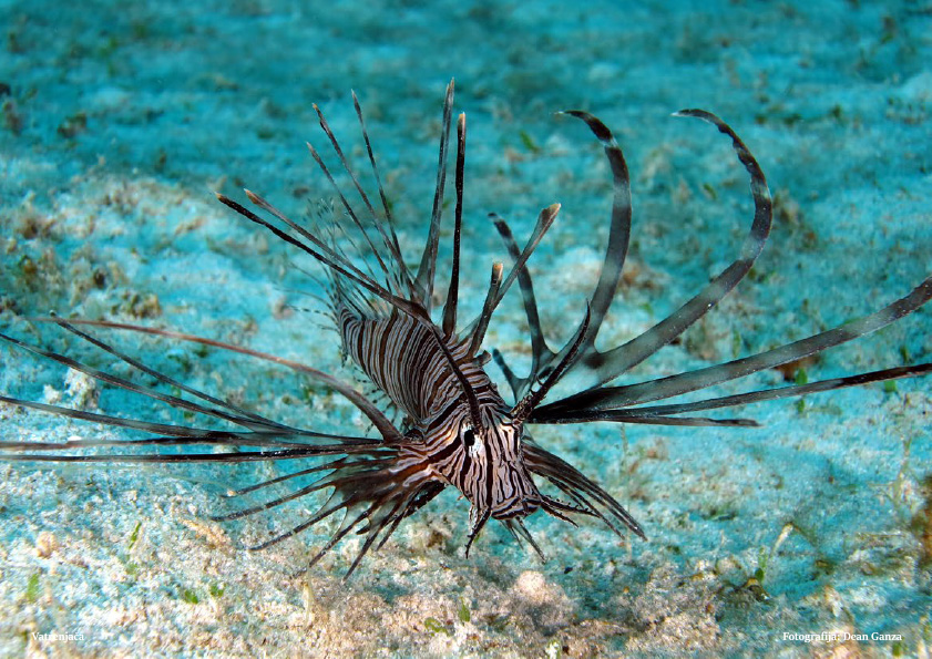 Latinski naziv: Pterois miles (Bennett, 1828) Ostali nazivi: riba lav, vatrena vražja riba Dubina obitavanja: 0 – 85 m Karakteristike: Naraste do 35 cm u duljinu. Leđna peraja ima 13 dugih, jakih bodlji i 9-11 mekih zraka, a analna peraja ima tri dugačke bodlje i šest ili sedam mekih zraka. Leđna peraja izgleda perasto, a prsne peraje su poput krila s odvojenim širokim, glatkim zrakama. Ove ribe variraju u boji od crvenkaste do žutosmeđe ili sive i imaju brojne tanke, tamne, okomite pruge na glavi i tijelu. Rasprostranjenost: Indijski ocean, od Crvenog mora do Južne Afrike i Indonezije (prvi put zabilježen je 1991. u Sredozemnom moru kod Izraela, a nakon ulaska preko Sueskog kanala sada je uobičajen u istočnom bazenu s nedavnim opažanjima u Sicilijanskom kanalu), istočna obala Sjedinjenih Američkih Država, Karipsko more gdje se smatra invazivnom vrstom Zanimljivosti: Invazivna vrsta i vrlo otrovna Vatrenjača je uglavnom noćna vrsta, a danju se skriva u pukotinama. Hrani se ribom i sitnim rakovima. Ima malo prirodnih grabežljivaca, vjerojatno zbog svojih otrovnih bodlji, ali veće vatrenjače love manje. Murine su pokazale otpornost na njihove bodlje. Pokazalo se da se njome hrani plavopjegavi trubač (Fistularia commersonii), još jedna invazivna vrsta u Sredozemnom moru, kao i kirnje. Perajne bodlje vrlo su otrovne. Unatoč tomu, ubod ove vrste rijetko je koban za ljude. Ubod može izazvati jaku bol, povraćanje, grčeve, manju paralizu i poteškoće s disanjem. Stoga se snažno preporučuje hitna medicinska pomoć, čak i za zdrave odrasle osobe koje su se ubole, jer su neki ljudi nakon uboda osjetljiviji na otrov od drugih, a simptomi i reakcije na otrov variraju u jačini od osobe do osobe.